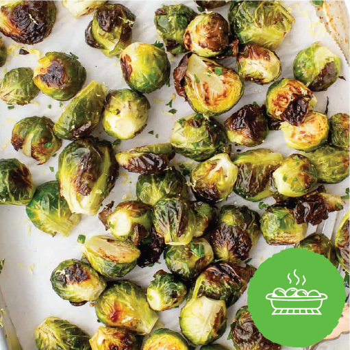 Cut Brussels sprouts in half and toss with oil, salt and pepper.